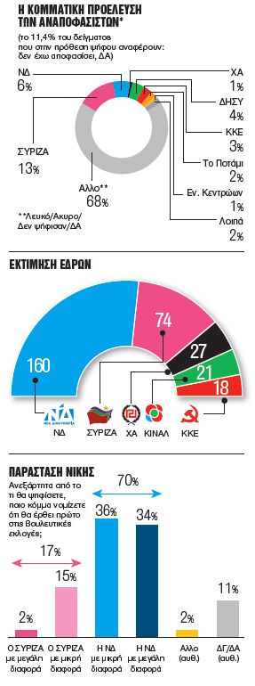 Η στρατηγική Τσίπρα προκαλεί βαθύτερες διεργασίες στην κοινωνία – Σταθερό διψήφιο προβάδισμα για Μητσοτάκη, αλλά και ενίσχυση των άκρων και της Χρυσής Αυγής – Πιθανότερη η πεντακομματική Βουλή