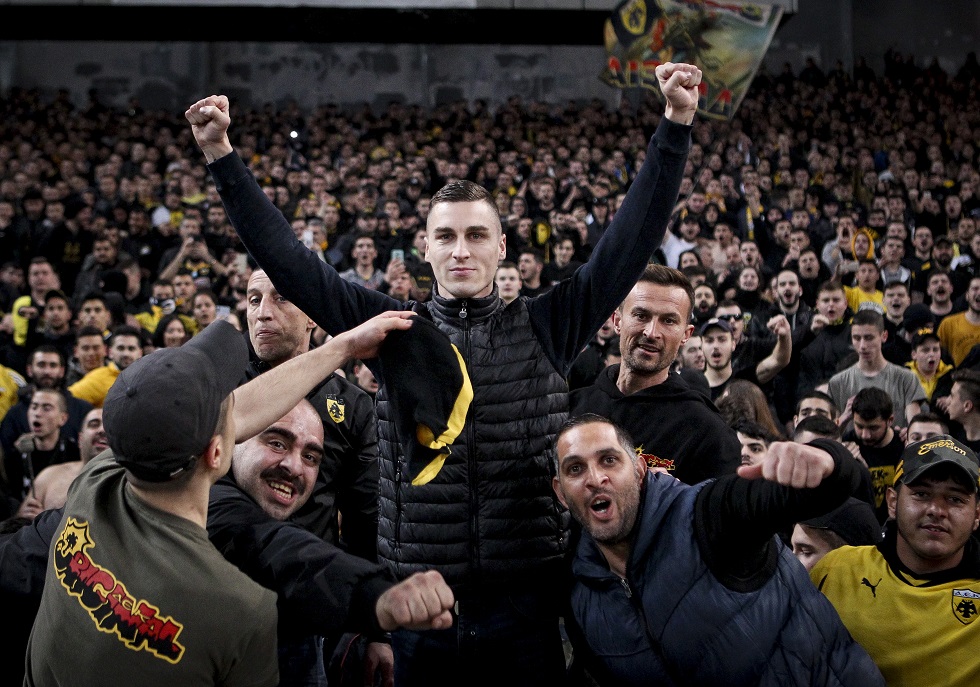 Ο Βόσνιος βρίσκεται στο ΟΑΚΑ για το ντέρμπι με τον ΠΑΟΚ και γνώρισε την αποθέωση από τον κόσμο της ΑΕΚ – Ανέβηκε στην κερκίδα, φώναζε συνθήματα και έδωσε ρυθμό με το τύμπανο!