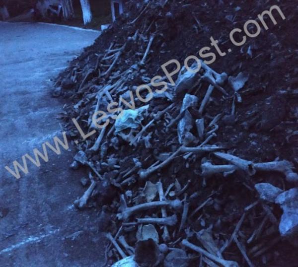 Μπροστά σε ένα αποκρουστικό και συνάμα ντροπιαστικό θέαμα βρέθηκαν σήμερα κάτοικοι του Πλωμαρίου, στην Λέσβο, αντικρίζοντας έξω από το χώρο του νεκροταφείου ανθρώπινα οστά πεταμένα μέσα στο δρόμο τα οποία ήταν ανακατεμένα με μπάζα.
