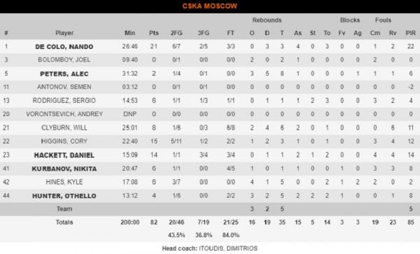 Οι Μοσχοβιτες άντεξαν στην πίεση, είχαν το δίδυμο των Ντε Κολο και Χακετ σε φοβερή βραδιά ξανά και στο μεγάλο ντέρμπι κορυφής πήραν μια μεγάλη νίκη. Οι φιλοξενούμενοι είχαν τους Καμπάτσο και Ράντολφ να αντιστέκονται σθεναρά, χωρίς όμως να είναι αρκετοί για να έρθει το θετικό αποτέλεσμα.