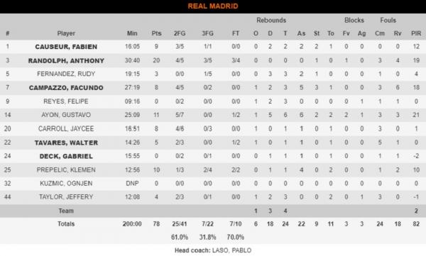 Παίκτης κλειδί για τους γηπεδούχους ήταν ο Χίγκινς που στην επανεμφάνιση του είχε 15 πόντους με τους πρωταθλητές Ευρώπης να έχουν τον Ράντολφ στους 20.