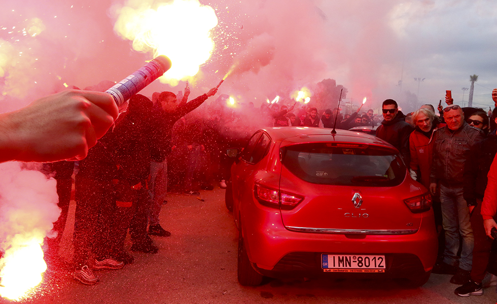 Αποθέωση και απαίτηση για «διπλό». Οι οργανωμένοι οπαδοί του Ολυμπιακού είχαν δώσει ραντεβού για το Γεώργιος Καραϊσκάκης.
