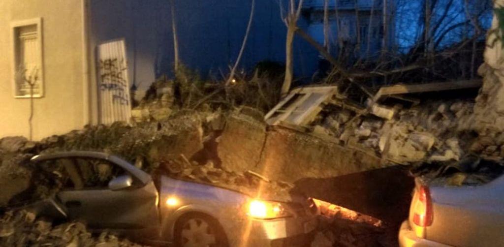 Σαν… χάρτινος πύργος κατέρρευσε τα ξημερώματα της Κυριακής η πρόσοψη ενός ερειπωμένου κτιρίου στο Γκάζι.