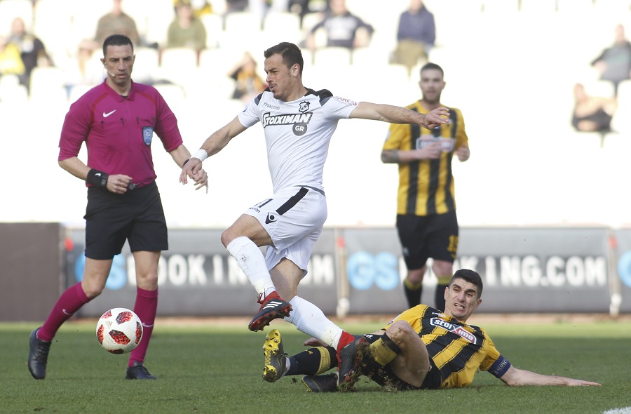 Ο Χουλτ ανέτρεψε τον Δεληγιαννίδη στην περιοχή αλλά ο διαιτητής Βρέσκας δεν έδωσε το πεντακάθαρο πέναλτι στον ΟΦΗ. Ένα ακόμα σφύριγμα… εξυγίανσης υπέρ της ΑΕΚ, καθώς είχε προηγηθεί το πέναλτι–φάντασμα του Σιδηρόπουλου στο Περιστέρι