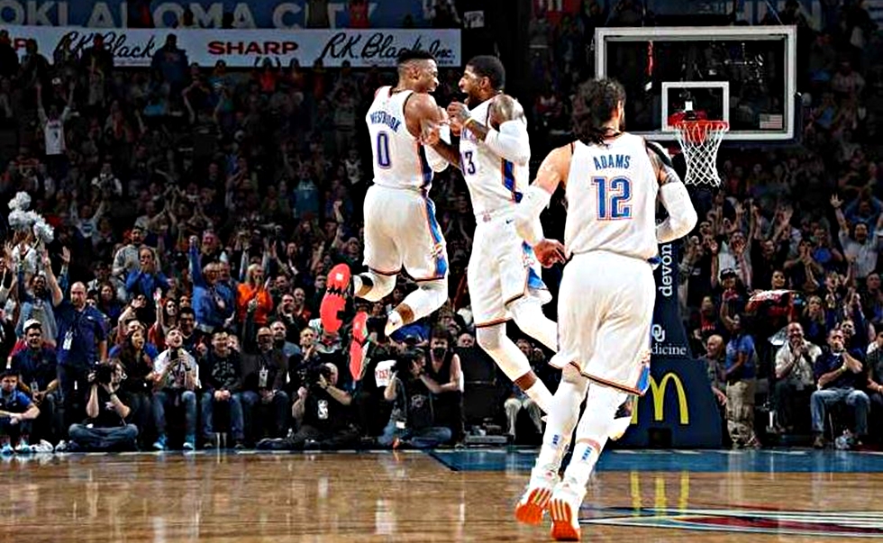 Στη νίκη της Οκλαχόμα επί του Πόρτλαντ (120-111) οι Πολ Τζορτζ και Ράσελ Γουέστμπρουκ έγιναν το 10ο ζευγάρι συμπαικτών στην ιστορία του NBA που πετυχαίνουν triple double στο ίδιο ματς