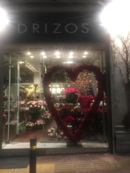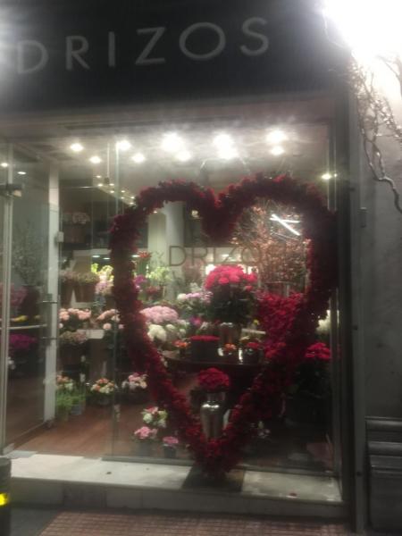 Τα ανθοπωλεία είναι γεμάτα με κατακόκκινα τριαντάφυλλα. Τριαντάφυλλα τα οποία σχηματίζουν τεράστιες καρδιές, «προσκαλώντας» έτσι τους ερωτευμένους να αγοράσουν. Το πλέον ερωτικό λουλούδι είναι το βαθύ, κόκκινο τριαντάφυλλο. Τα πιο ακριβά και όμορφα, είναι σίγουρα τα μπακαρά. Απευθύνονται σε αυτούς οι οποίοι θέλουν να βάλουν λίγο… πιο βαθιά το χέρι στην τσέπη. Ένα ανθοπωλείο στο Κολωνάκι πουλάει τριαντάφυλλα σε τόσο βαθύ κόκκινο, που σχεδόν μοιάζουν με μαύρα. Τα στολίζει με ασημόσκονη, παρουσιάζοντας ένα άρτιο, αισθησιακό αποτέλεσμα. Τα μεγάλα κοσμηματοπωλεία στο κέντρο της πόλης, είναι γεμάτα κόκκινες καρδιές.