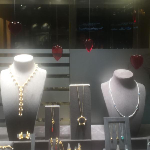 Ρουμπίνια και κόκκινες καρδιές στις βιτρίνες…