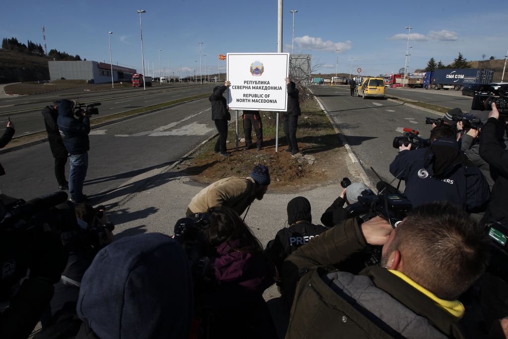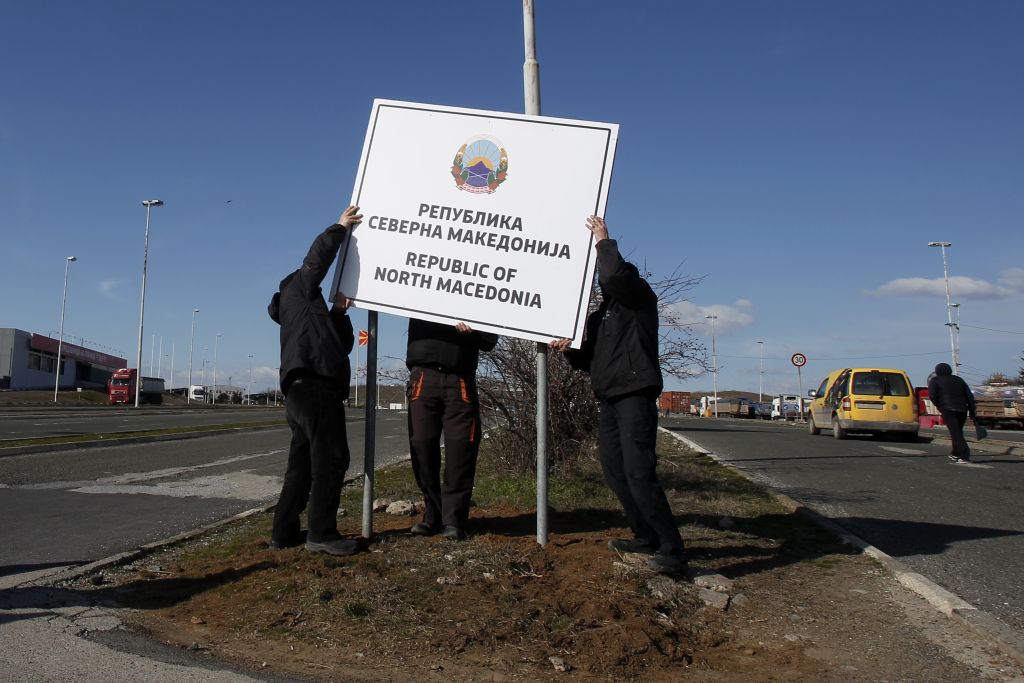 Λίγο μετά το μεσημέρι της Τετάρτης τοποθετήθηκε στη μεγαλύτερη συνοριακή δίοδο της χώρας, αυτήν στην Γευγελή (απέναντι από το τελωνείο των Ευζώνων) πινακίδα με το νέο όνομα της χώρας, «Δημοκρατία της Βόρειας Μακεδονίας», αφού πρώτα είχαν αφαιρεθεί οι πινακίδες με το όνομα «Μακεδονία».