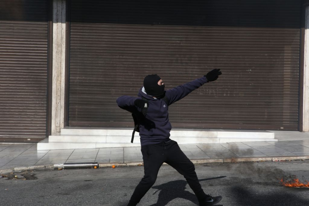 Περίπου 15 άτομα με καλυμμένα τα χαρακτηριστικά τους επιτέθηκαν σε αστυνομικούς με πέτρες, μάρμαρα και άλλα αντικείμενα.