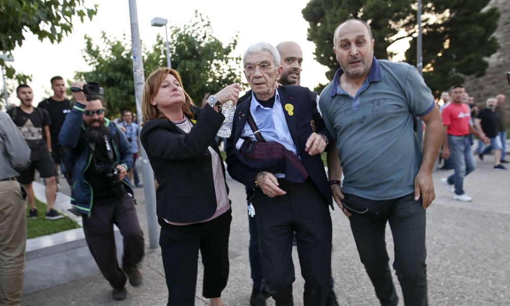 Κάποιοι του ζήτησαν αρχικά να αποχωρήσει από το σημείο και αντέδρασαν επειδή πραγματοποιήθηκε το »Thessaloniki Pride», αλλά και για τις δηλώσεις του σχετικά με το Σκοπιανό.