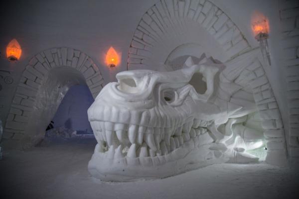 Από τα πιο εντυπωσιακά γλυπτά είναι αυτό σε σχήμα δράκου και αυτό που θυμίζει το διάσημο θρόνο της σειράς. Ένας ακόμη δράκος «φρουρεί» το Ice Bar, όπου τα ποτά σερβίρονται σε ποτήρια σκαλισμένα από πάγο και όχι σε χρυσά, όπως συνηθίζεται στη σειρά.