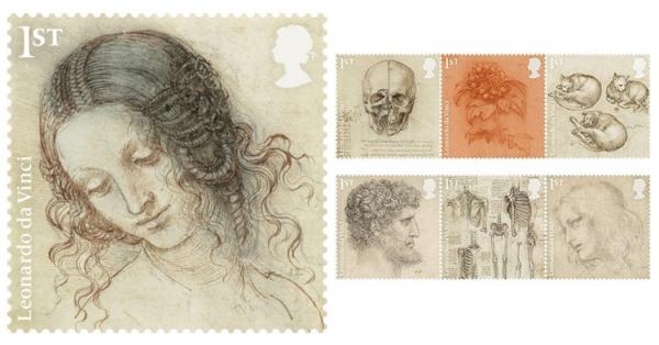 Δώδεκα από τα πιο διάσημα σχέδια του Λεονάρντο ντα Βίντσι θα φτάνουν σε λίγο στα γραμματοκιβώτια σ' όλη τη Βρετανία, χάρη στην ειδική έκδοση του Βασιλικού Ταχυδρομείου, που τιμά τα 500 χρόνια από τον θάνατο της μοναδικής μεγαλοφυΐας