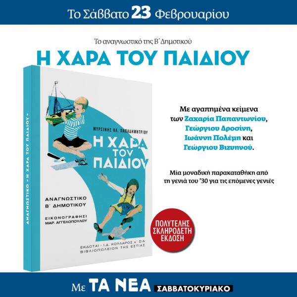 Αυτή την εβδομάδα με ΤΑ ΝΕΑ Σαββατοκύριακο, το αναγνωστικό της Δευτέρας Δημοτικού «Η Χαρά του Παιδιού», με αγαπημένα κείμενα των Παπαντωνίου, Δροσίνη, Πολέμη, Βλάχου και Βιζυηνού.