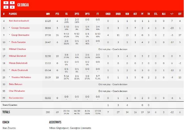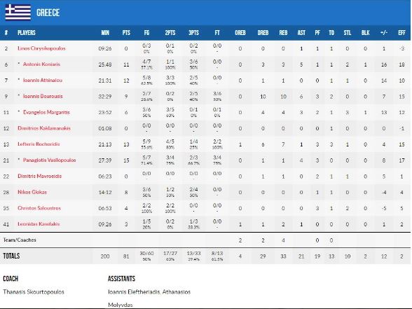 Για την ομάδα του Ηλία Ζούροου που κατά διαστήματα έβαλε δύσκολα στην Ελλάδα, ο Σερμαντίνι ήταν σούπερ με 26π. ενώ ο ΜακΦάντεν τελείωσε με 18.