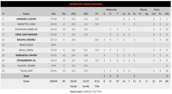 Η Γκραν Κανάρια είχε τεράστια προβλήματα σε άμυνα και επίθεση, δεν μπορούσε να κοντράρει την ΤΣΣΚΑ Μόσχας και υποχρεώθηκε να ακολουθεί στο σκορ, ενώ οι Ρώσοι πήραν τη νίκη με το τελικό 107-85.