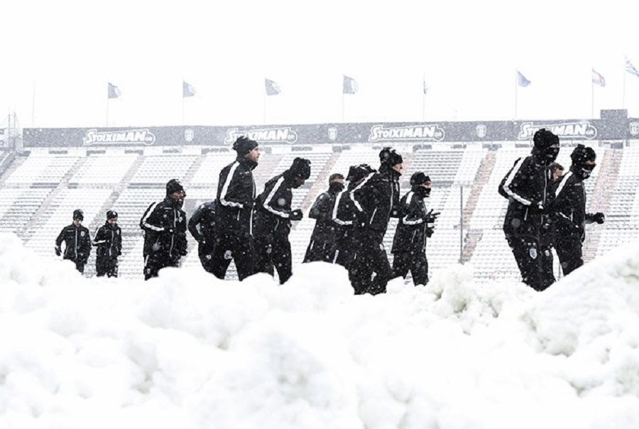 Στην κατάλευκη εξαιτίας της έντονης χιονόπτωσης που πλήττει τη Θεσσαλονίκη από το πρωί του Σαββάτου διεξήχθη η τελευταία προπόνηση του ΠΑΟΚ για το παιχνίδι της 22ης αγωνιστικής της Super League Σουρωτή κόντρα στον Άρη. Παίκτες και τεχνικό επιτελείο έδωσαν βάση στην τακτική προσέγγιση της επικείμενης μάχης, ενώ στο τελευταίο κομμάτι έγινε εξάσκηση και στις στημένες φάσεις.