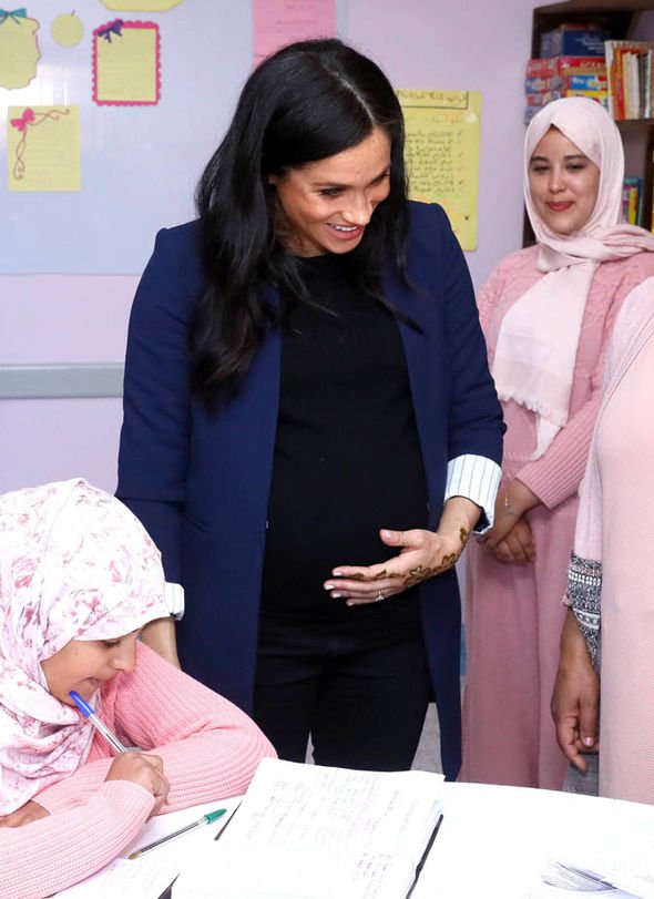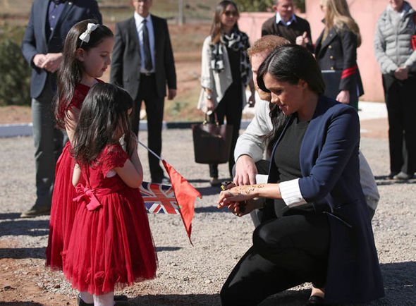 Κατά τη διάρκεια της επίσκεψης στο ορεινό χωριό, η Μέγκαν Μαρκλ πήρε μέρος σε μια τελετή χέννας και άφησε τα κορίτσια να της σχεδιάσουν κάτι στο χέρι της για να γιορτάσει την εγκυμοσύνη της