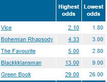 Ο Τιμ Γκρέι, που παρακολουθεί τα κινηματογραφικά βραβεία για το περιοδικό Variety, θεωρεί ότι θα κερδίσει το «Green Book»: η πραγματική ιστορία ενός κλασικού μαύρου πιανίστα που περιοδεύει στον αμερικανικό νότο, σύμβολο των φυλετικών διακρίσεων τη δεκαετία του 1960.