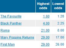 Φαβορί, επίσης, δείχνει πως θα είναι ο Γιώργος Λάνθιμος και στην κατηγορία της Καλλιτεχνικής Διεύθυνσης με το «Black Panther» και το «Ρόμα» που ακολουθούν, να μην δείχνουν ικανά να απειλήσουν.