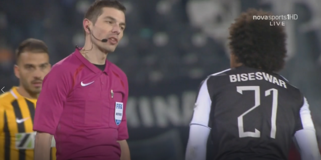 Ο ΠΑΟΚ αντιμετωπίζει τον Αρη στην Τούμπα για την 22η αγωνιστική της Σούπερ Λίγκας, με τον Ντιέγκο Μπίσεσβαρ στο τέλος του πρώτου ημιχρόνου να… στολίζει με «γαλλικά» τον διαιτητή της αναμέτρησης, Τόρε Χάνσεν.