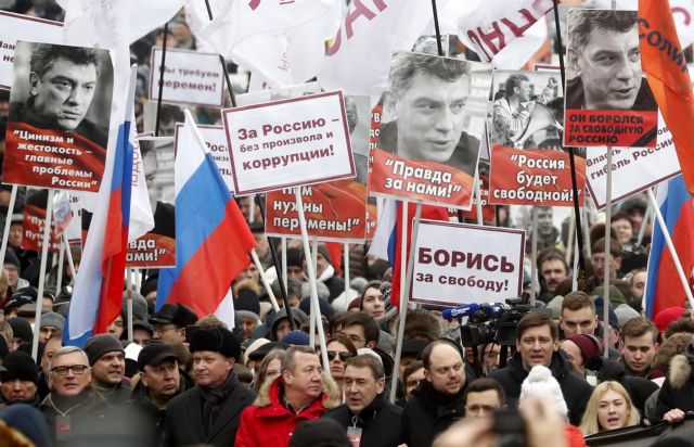Χιλιάδες Μοσχοβίτες, ανάμεσά τους προσωπικότητες της ρωσικής αντιπολίτευσης, πραγματοποίησαν πορεία στην μνήμη του αντιφρονούντα Μπορίς Νεμτσόφ, που δολοφονήθηκε πριν από τέσσερα χρόνια δίπλα στο Κρεμλίνο.