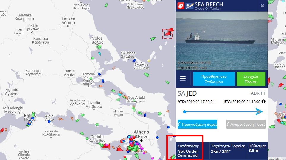 Πρόκειται για το δεξαμενόπλοιο Sea Beach με σημαία των Νήσων Μάρσαλ και 26 άτομα πλήρωμα είχε αναχωρήσει από το Πόρτ Σάιντ της Αιγύπτου με προορισμό την Κωνσταντινούπολη.