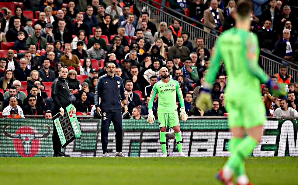 Όσοι παρακολούθησαν από το γήπεδο ή την τηλεόραση τον τελικό του League Cup μεταξύ των Τσέλσι και Μάντσεστερ Σίτι έγιναν μάρτυρες ενός πρωτοφανούς σκηνικού. Ο τερματοφύλακας των Μπλε, Κέπα, αρνήθηκε να βγει αλλαγή στο φινάλε της παράτασης «ακυρώνοντας» την πρόθεση του προπονητή του Μαουρίτσιο Σάρι να χρησιμοποιήσει κάτω από τα δοκάρια τον πιο έμπειρο Καμπαγέρο για τη διαδικασία των πέναλτι. Ο Ιταλός τεχνικός έγινε έξαλλος με τον τερματοφύλακά του και μάλιστα κινήθηκε για να αποχωρήσει από τον πάγκο! Τον αγώνα κέρδισε στα πέναλτι με 4-3 η Σίτι (0-0 κανονική διάρκεια και παράταση).