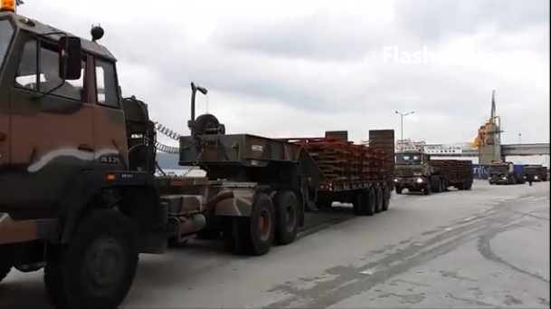 Συγκεκριμένα, ένα μεγάλο κομβόι δώδεκα στρατιωτικών οχημάτων μετέφεραν υλικό κατασκευής ικανό να κατασκευάσει δυο στρατιωτικού τύπου γέφυρες, μήκους 25-30 μέτρα η καθεμία.
