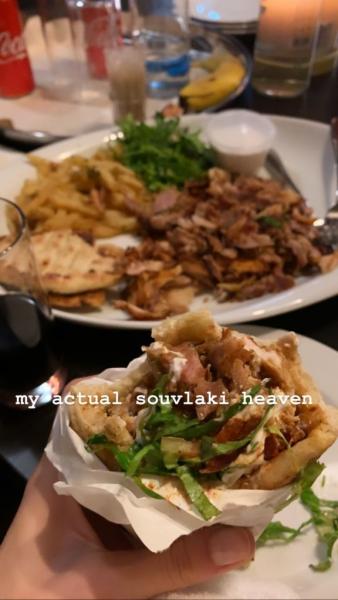 Η Μπ. Χαντίντ δεν έχασε την ευκαιρία να γευτεί ελληνικές λιχουδιές, όπως σουβλάκι και μπακλαβά ανεβάζοντας μάλιστα και φωτογραφίες από την παραμονή της στην Αθήνα, γράφοντας χαρακτηριστικά στη λεζάντα στον προσωπικό της λογαριασμό στο Instagram: «Στην Αθήνα αυτή τη μέρα. Με το ζόρι κρατάω τα μάτια μου ανοιχτά, αλλά αυτό το McQeen με βοηθάει να μένω προσηλωμένη».