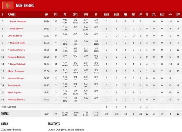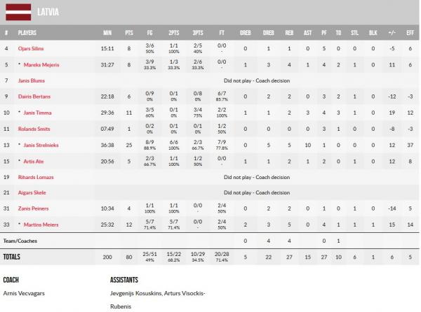 Για τη Λετονία, ο Γιάνις Στρέλνιεκς του Ολυμπιακού ήταν σε τρομερή μέρα, μετρώντας 25 πόντους, 10 ασίστ και 5 ριμπάουντ, ενώ πολύ καλός ήταν ο έτερος ερυθρόλευκος, Γιάνις Τίμα, με 11 πόντους, 3 ασίστ και 2 ριμπάουντ. Για το Μαυροβούνιο, ξεχώρισαν οι Ντέρεκ Νίντμαν (22 πόντοι) και Τοντόροβιτς (13 πόντοι, 4 ριμπάουντ).