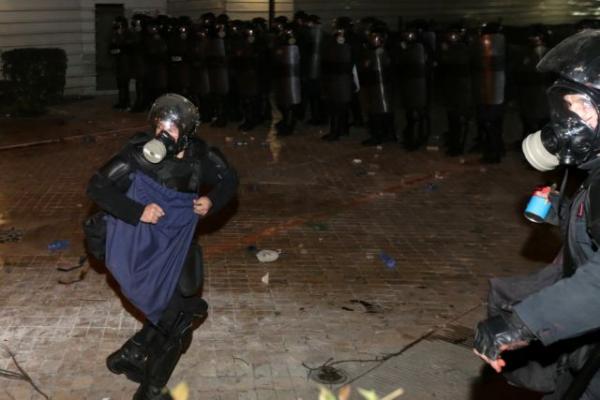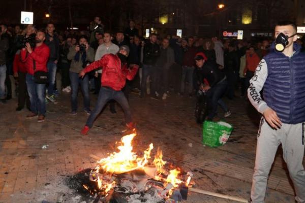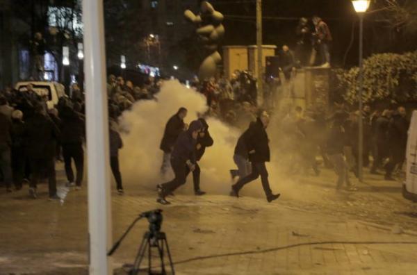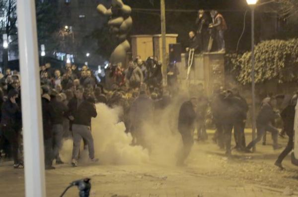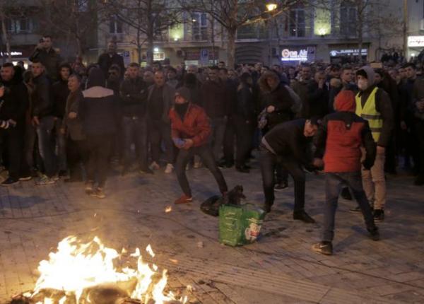 Οι διαδηλωτές άναψαν φωτιές, πυρπόπλησαν αυτοκίνητα και πέταξαν φωτοβολίδες στους αστυνομικούς, στην προσπάθειά τους εμβολίσουν τον κλοιό φύλαξης και να προσεγγίσουν την Βουλή.