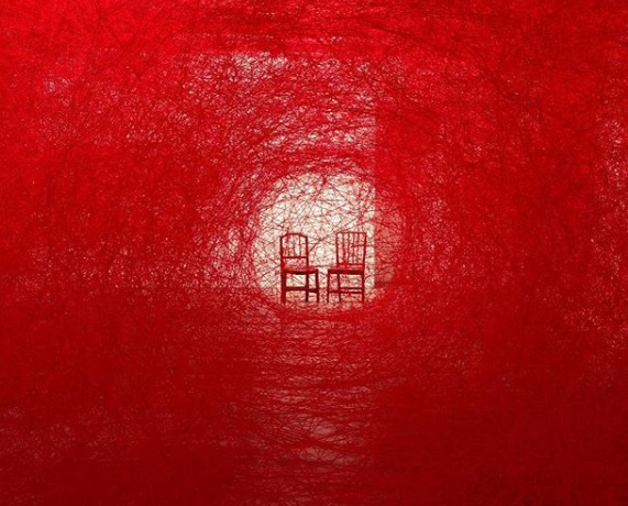 Από τις 6 ως τις 7 και μισή, δύο περφόρμερ με κάποιον τρόπο μπαίνουν μέσα σε αυτό το χάος κόκκινων νημάτων και κάθονται στις καρέκλες. Μπορεί να μην κάνουν τίποτα άλλο από το να κάθονται. Μια σιωπηρή, στοχαστική εμπειρία, με αυτά τα κόκκινα ζικ ζακ να δένουν κόμπους τα βλέμματα των παρισταμένων.