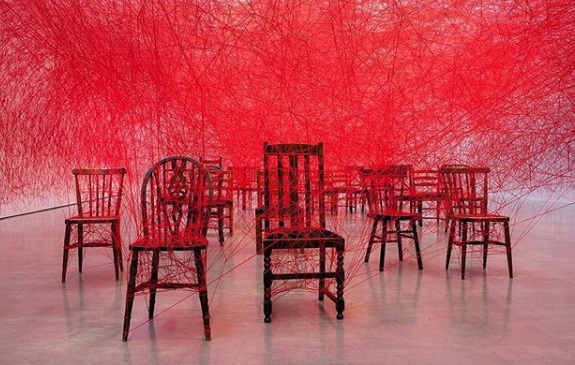 Η εγκατάσταση της Σιότα φέρει τον τίτλο «Lifelines»: χιλιάδες νήματα και δύο άδειες καρέκλες. Όμως, κάθε Δευτέρα στις 6 το απόγευμα, οι καρέκλες παύουν να είναι άδειες, και η περφόρμανς αρχίζει.