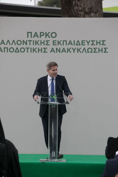 Είναι πολύ ευχάριστο, που η Δομή των Πάρκων αποτελεί μια θετική πανευρωπαϊκή πρωτιά της χώρας μας, καθόσον δεν έχει ακόμα επεκταθεί η καλή πρακτική σε άλλες χώρες της Ευρώπης.Χαίρομαι που στο «Πάρκο της Ανακύκλωσης» εφαρμόζεται τόσο η νομική υποχρέωση της Διαλογής στην Πηγή σε τέσσερα χωριστά ρεύματα υλικών συσκευασίας, όσο και η σύσταση της Ευρωπαϊκής Επιτροπής.