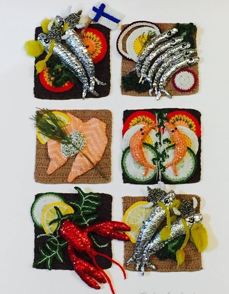 Σύντομα, επικεντρώθηκε σε art food, αλλά με βελονάκι. «Το καθημερινό με γοήτευε και με ενέπνεε πάντα, ειδικά τα τρόφιμα. Άρα, άρχισα να παίρνω πράγματα που όλοι ξέρουμε και αγαπάμε – όπως fish and chips – και να τα επινοώ εκ νέου σε μαλλί».