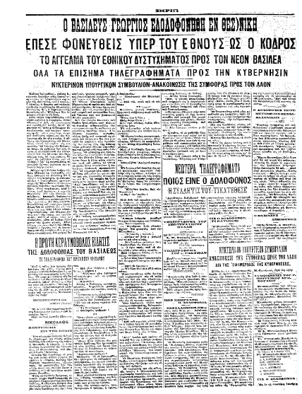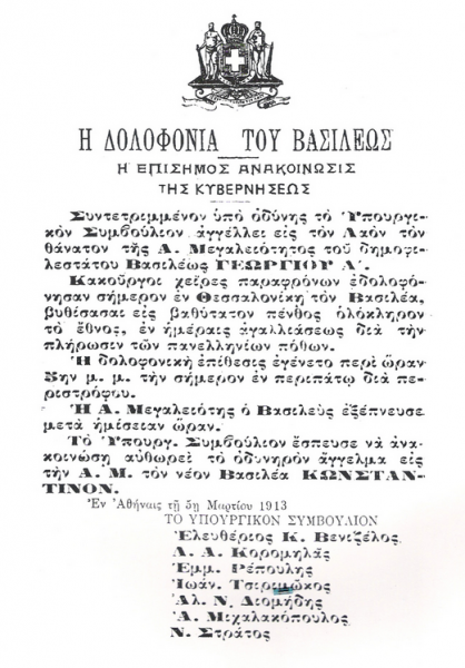 5/3/1913: Η δολοφονία του βασιλιά Γεωργίου Α’
