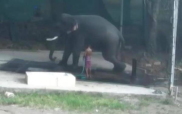Σε βίντεο που καταγράφηκε από την κάμερα ασφαλείας, ο εκπαιδευτής φαίνεται να προσπαθεί να κάνει μπάνιο το ζώο, ενώ το μαστιγώνει με μία ατσάλινη ράβδο με σκοπό να τον αναγκάσει να καθίσει στο έδαφος.