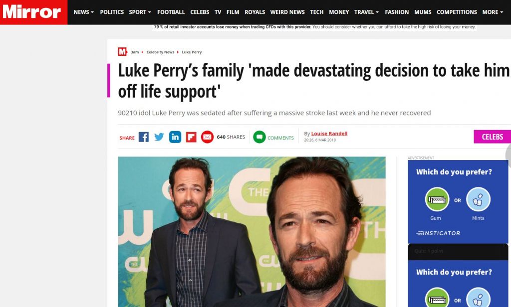 Μία πολύ δύσκολη απόφαση αναγκάστηκε να πάρει η οικογένεια του Luke Perry, γνωστού και «Ντίλαν» από τα «Χτυποκάρδια στο Μπέβερλι Χιλς».