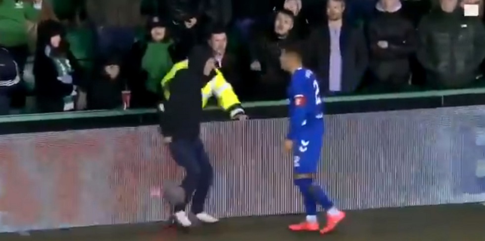 Ο Ταβιερνιέ πήγε να εκτελέσει το πλάγιο που είχε κερδίσει η ομάδα του, αλλά… πετάχτηκε από τις κερκίδες ένας οπαδός της Χιμπέρνιαν και κλώτσησε την μπάλα, με τους δύο άνδρες να πιάνονται στα χέρια.