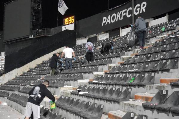 Μετά τη λήξη του αγώνα, οι μαθητές παρέμειναν στις κερκίδες του γηπέδου της Τούμπας και μάζεψαν ανακυκλώσιμα υλικά και τα τοποθέτησαν στους ειδικούς κάδους που διαθέτει η ΠΑΕ ΠΑΟΚ στις εισόδους των θυρών του γηπέδου.