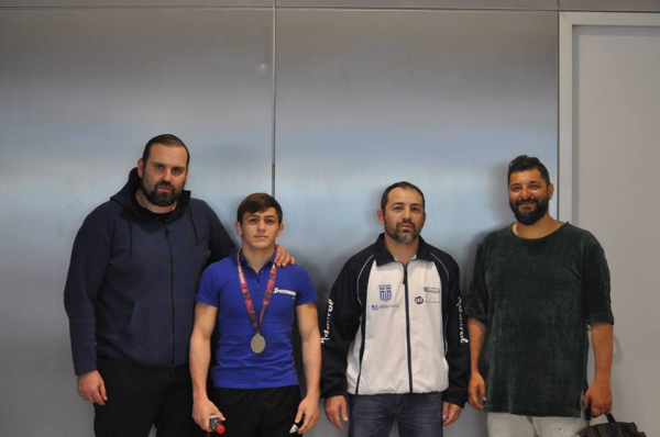 Το «χρυσό παιδί» της ελληνικής Πάλης υποδέχτηκαν ο πρόεδρος της Ομοσπονδίας Δημήτρης Τραμπάκουλας και ο αντιπρόεδρος Μύρων Στεφανάκης.