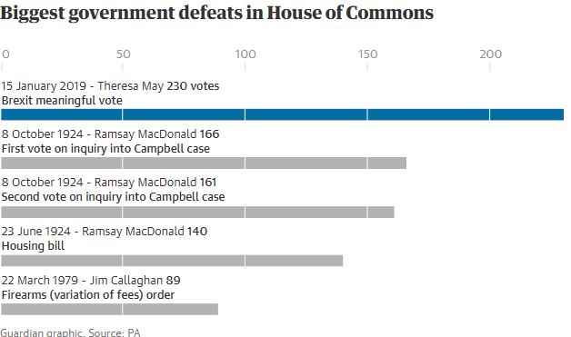 Στην ψηφοφορία του Ιανουρίου, η Μέι είχε σπάσει όλα τα κοντέρ, έχοντας υποστεί την μεγαλύτερη κυβερνητική ήττα στην ιστορία με 230 ψήφους της διαφοράς.