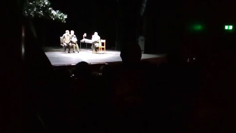 Tέσσερα μέλη του Ιερού Λόχου άρχισαν να φωνάζουν από τη θέση των θεατών συνθήματα κατά της παράστασης του ΚΘΒΕ «Πυρκαγιές» στο Βασιλικό Θέατρο της Θεσσαλονίκης.