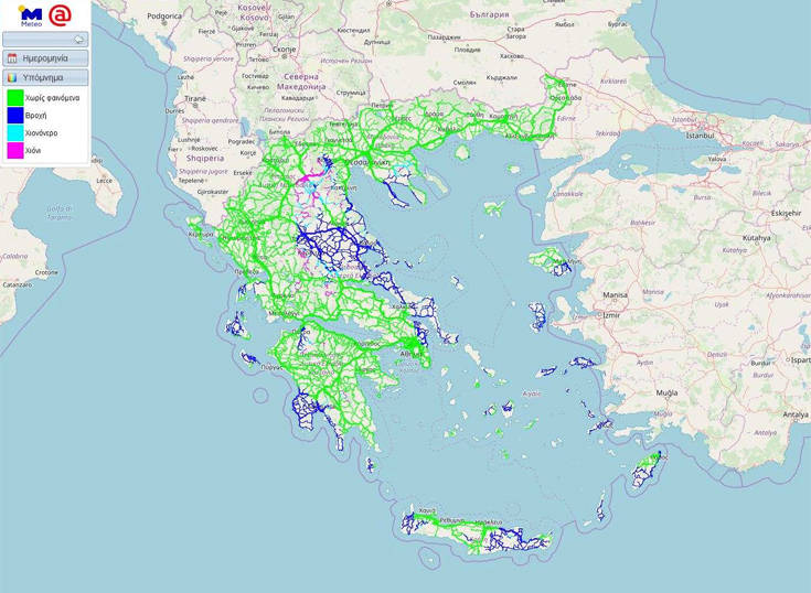 Οι καιρικές συνθήκες που θα επικρατήσουν στο οδικό δίκτυο της χώρας μας, τις πρωινές ώρες της Παρασκευής 15/03/2019, σύμφωνα με τη νέα υπηρεσία ROADS του meteo.gr