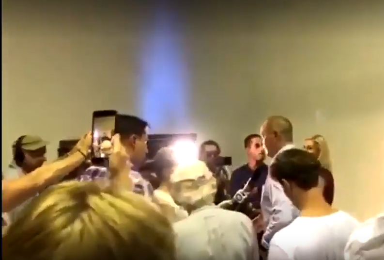 Ο Άνιγκ αντέδρασε χαστουκίζοντας τον νεαρό δύο φορές ενώ στη συνέχεια ένας από τους υπαλλήλους του γερουσιαστή τους χωρίζει.