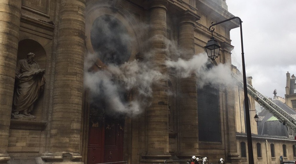 #Update: Witness on the ground hearing a fireman say this was no accident, this was set on fire, at the Roman church «saint-Sulpice» in #Paris. #SaintSulpice #France pic.twitter.com/fLCFDbYT0U
