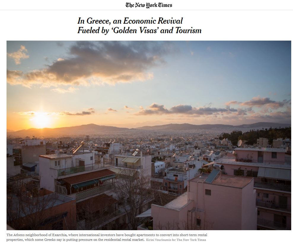 Όπως αναφέρεται στο δημοσίευμα, οι εργάτες οικοδομών εργάζονται σε κατοικίες που ανήκουν σε Ελληνες, οι οποίοι χρειάζονται μετρητά και τις ανακαινίζουν μετατρέποντάς τες για βραχυπρόθεσμη μίσθωση, Airbnbs ή πολυτελή νέα σπίτια για αλλοδαπούς. Την ίδια στιγμή, χιλιάδες αιτούντες βίζα, εκ των οποίων ένα μεγάλο μέρος Κινέζοι επενδυτές, οι οποίοι ψάχνουν για ακίνητη περιουσία, έρχονται στην Αθήνα, στη Σαντορίνη και την Κέρκυρα, αναζητώντας κατοικίες που θα τούς δώσουν μια ευρωπαϊκή βάση.