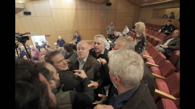 Τελικά οι σύνεδροι πιάστηκαν στα χέρια με σπρωξίματα και φωνές.