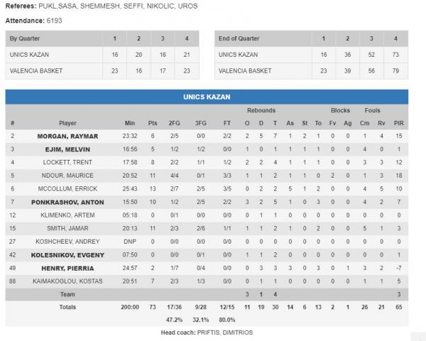 Αναφορικά με την εικόνα του ματς, η Βαλένθια έχτισε από νωρίς μια πολύτιμη διαφορά την οποία κατάφερνε έστω και αγχωτικά να διατηρεί. Η Ούνικς το πάλεψε ως το τέλος όμως ο Βαν Ρόσομ με βολές έκανε το 72-63 για τους φιλοξενούμενους με 1:15 για το φινάλε και κάπου εκεί κρίθηκαν όλα.