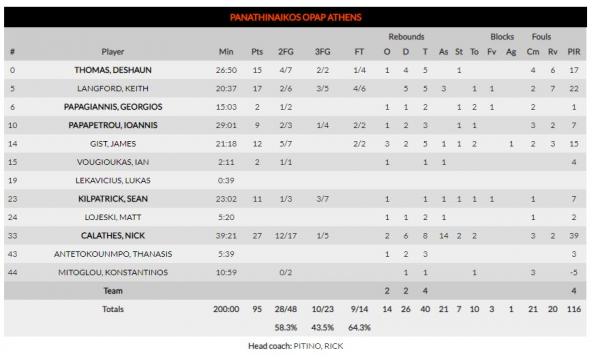 Ο Νικ Καλάθης ήταν απολαυστικός! Είχε 27 πόντους με 12/17 διπ, 1/5τριπ, 8ρ, 14 ας, ενώ δίπλα του οι Λάνγκφορντ (17π.), Τόμας (15π.), Γκιστ (12π.) και Κιλπάτρικ (11π) ήταν καταπληκτικοί.